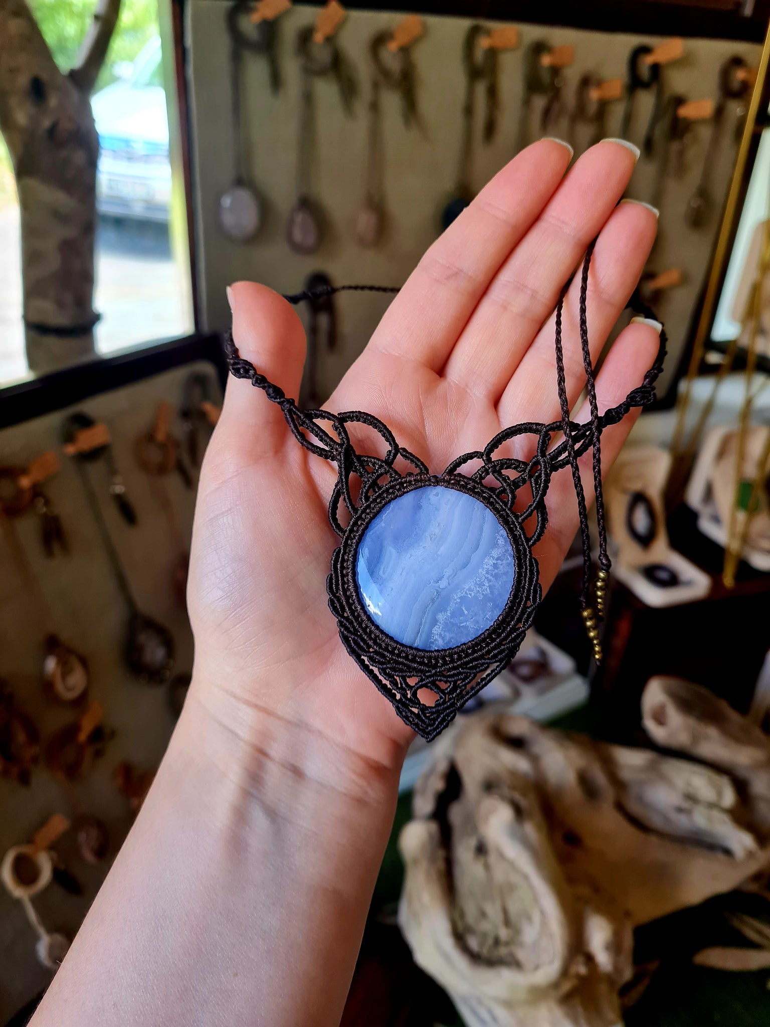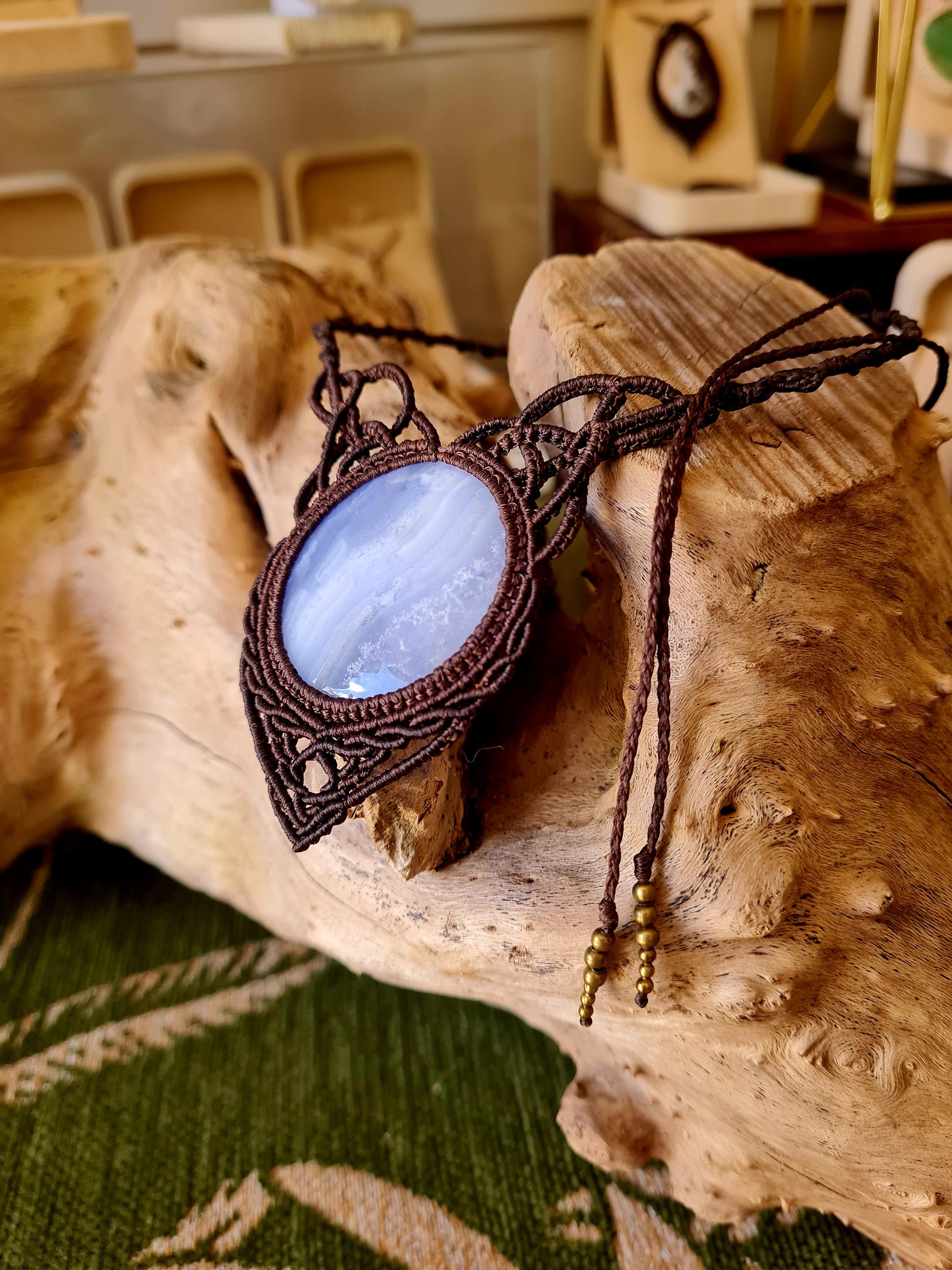 Blue-Lace Agate Wrapped Dark Mocca