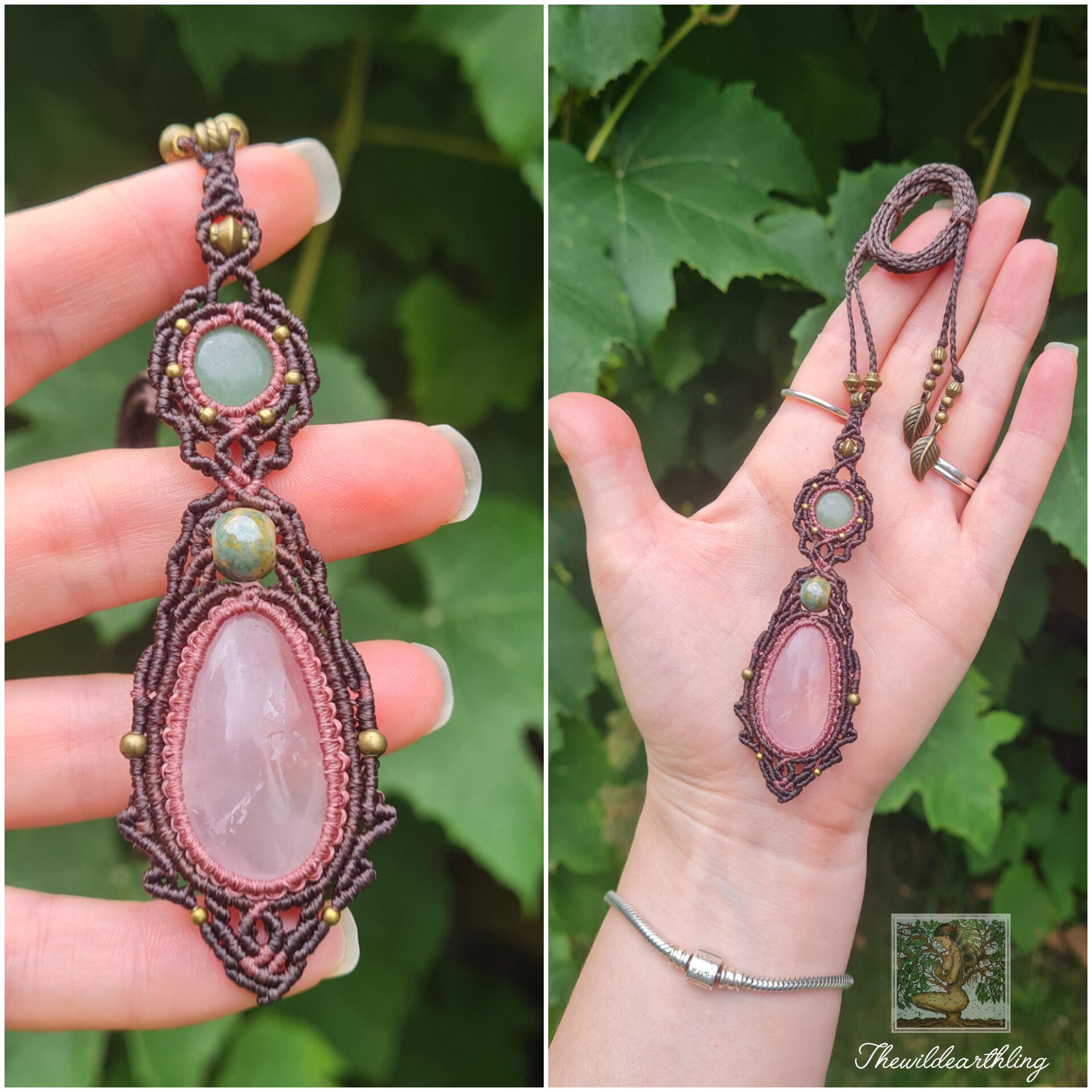 Rose Quartz & Aventurine Wrapped in Dusk Pink and Dark Mocca