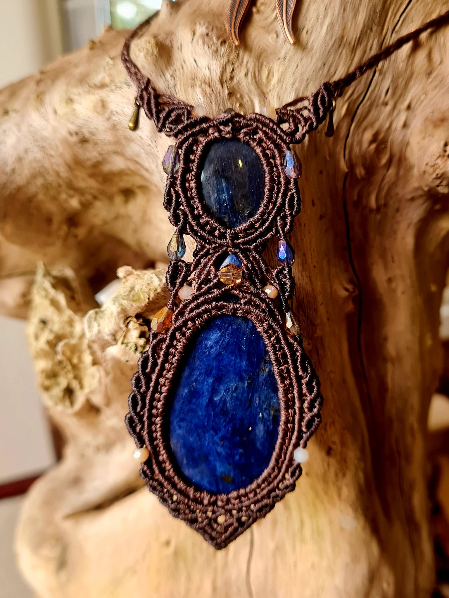Blue Azurite and Labradorite Wrapped in Dark Mocca