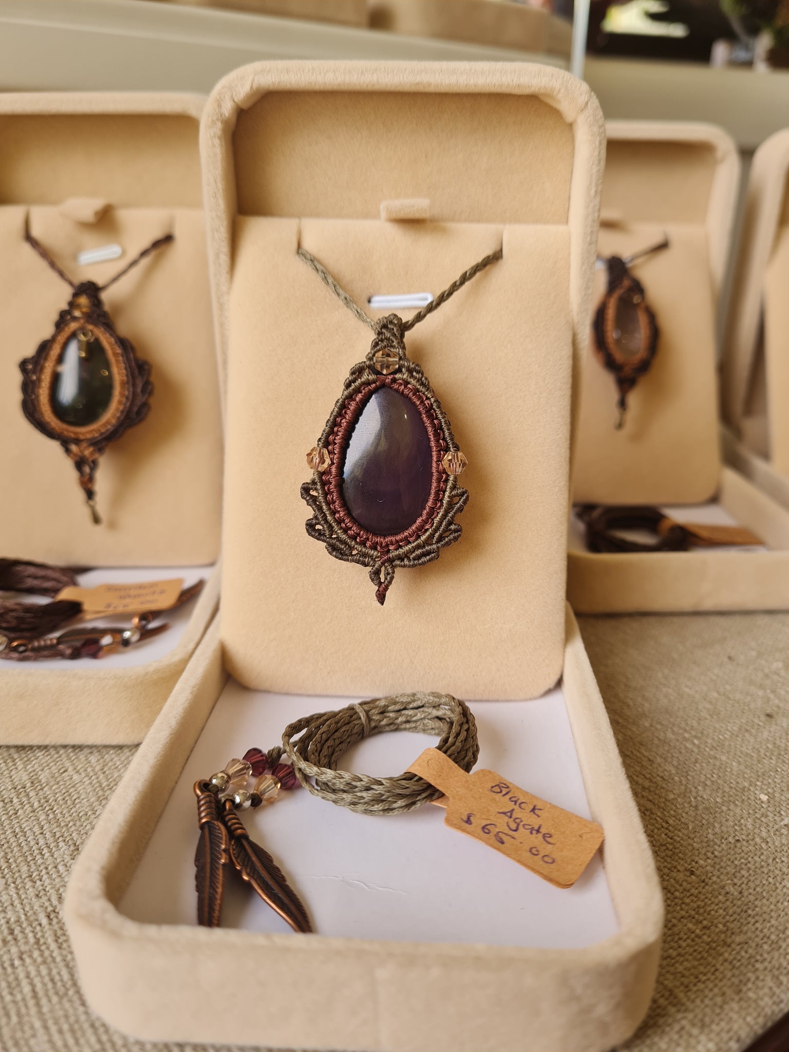 Mini Lotus Black Agate Wrapped in Khaki & Maroon