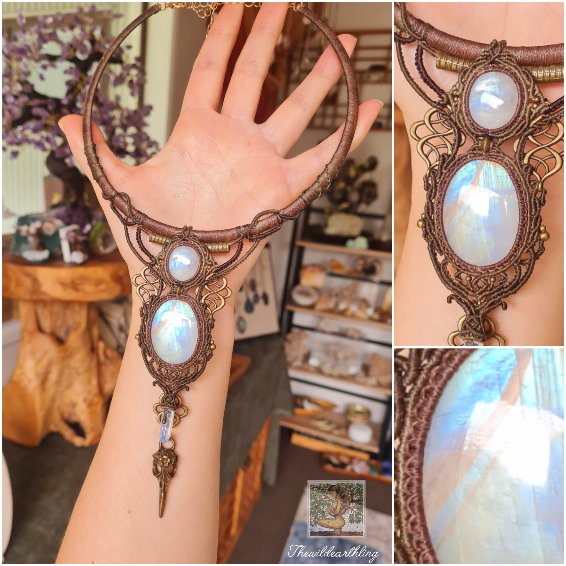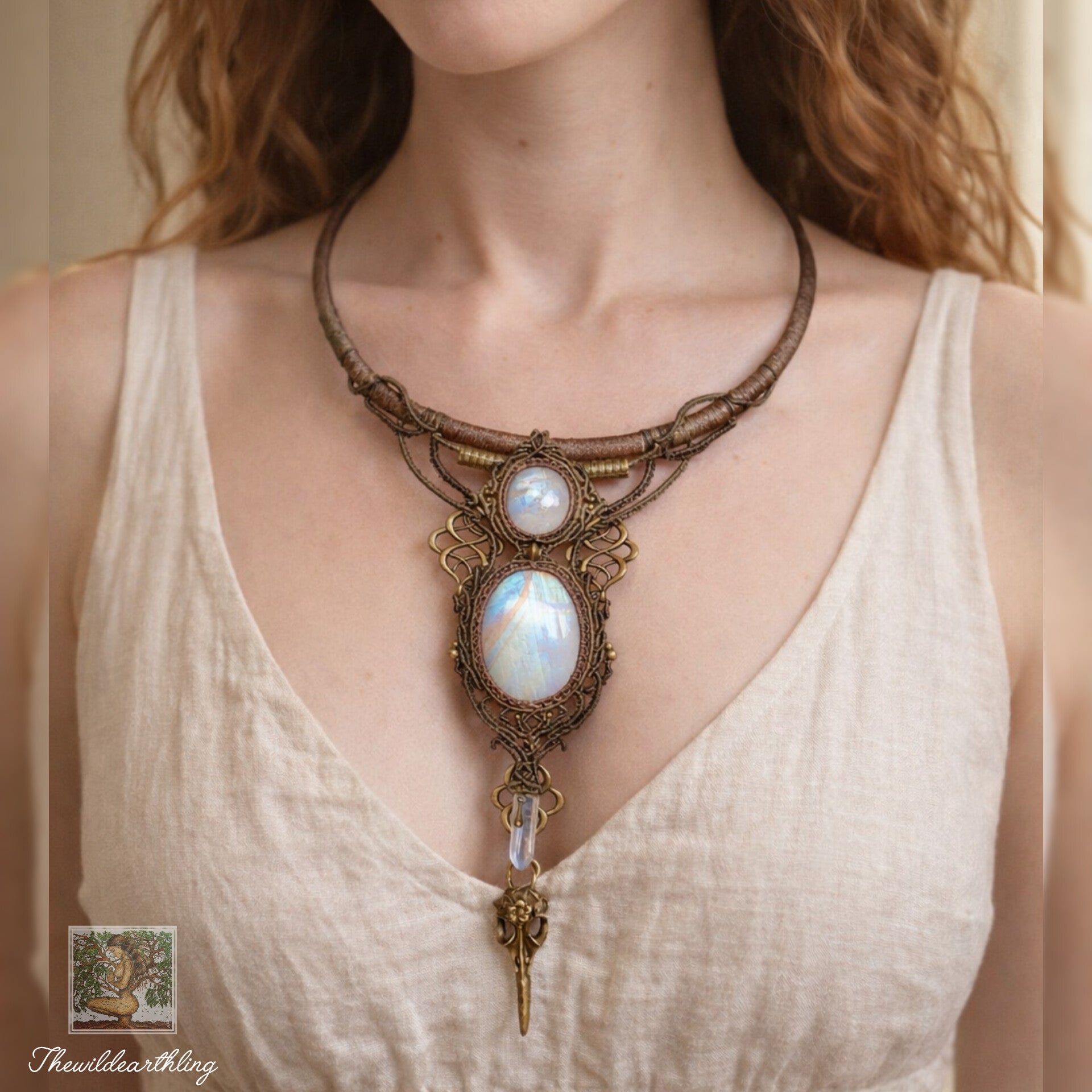 Moonstone Choker with Hanging Opalite