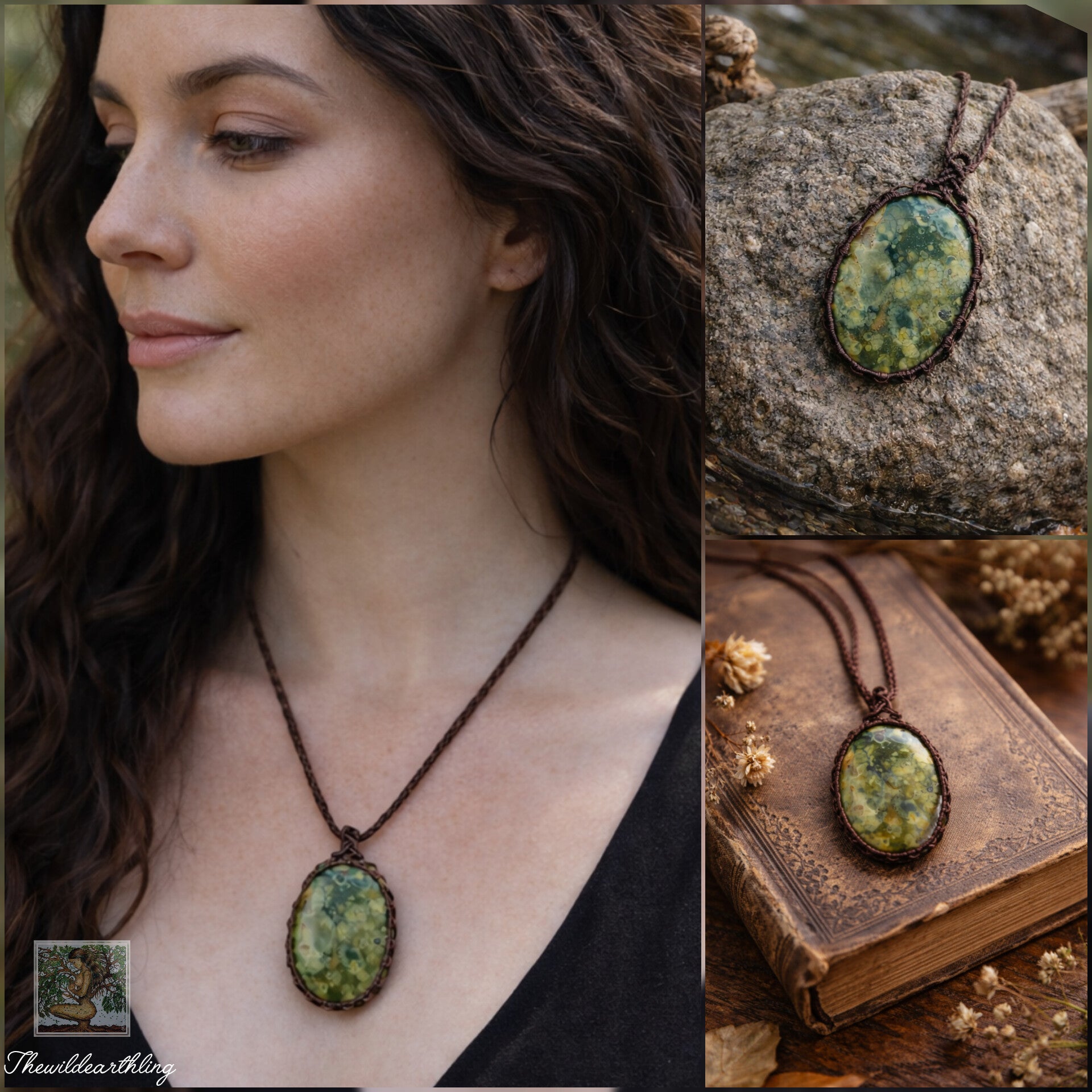 Rainforest Jasper Wrapped in Dark Mocca