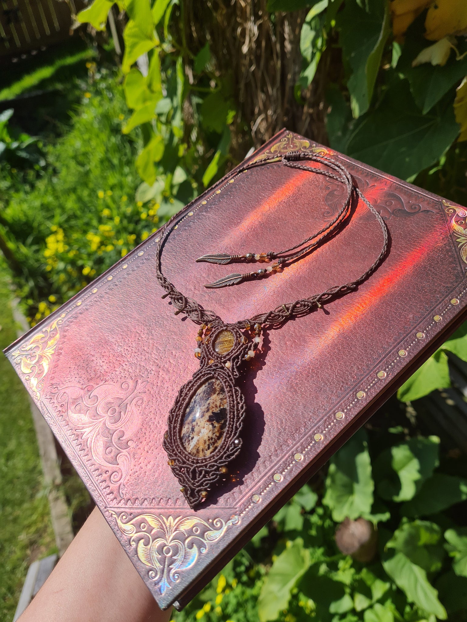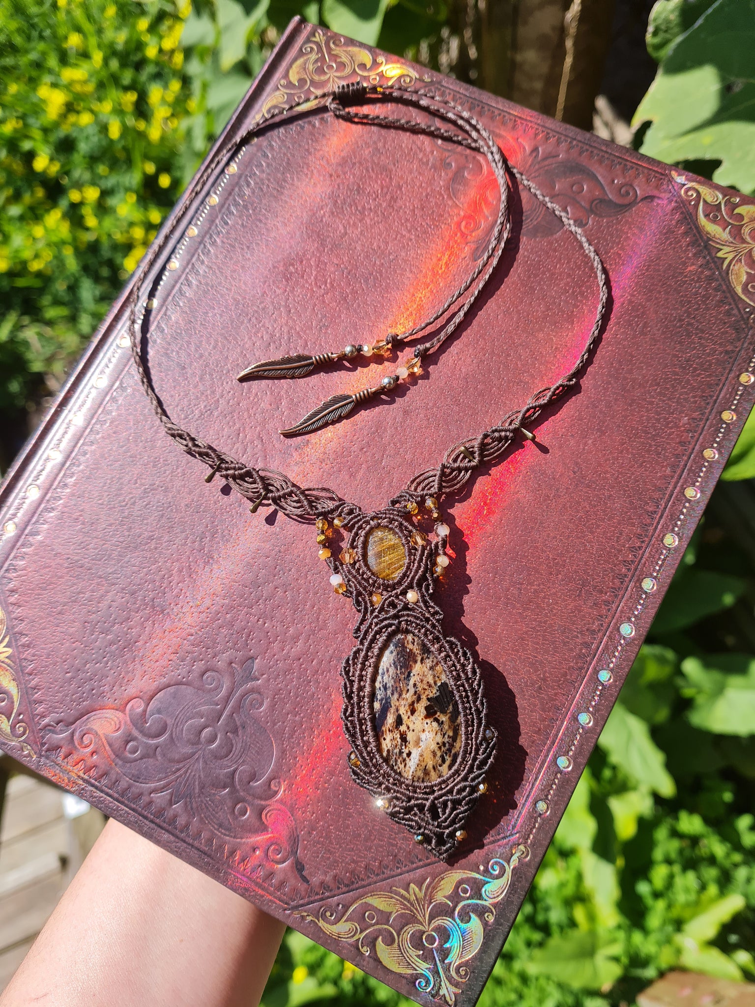 Feldspar and Rutile Quartz Wrapped in Dark Mocca