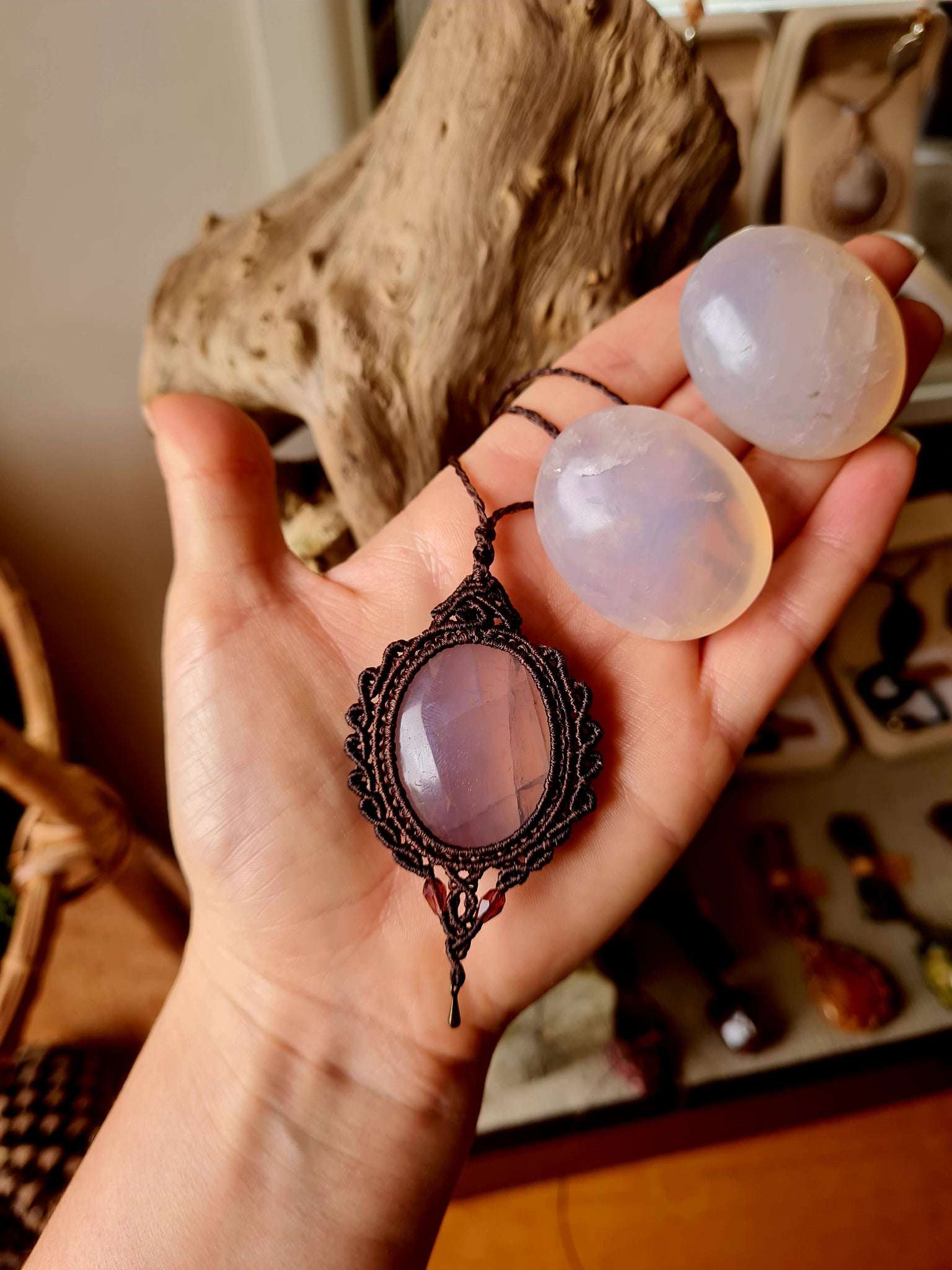 Lilac Rose Quartz Wrapped in Dark Mocca