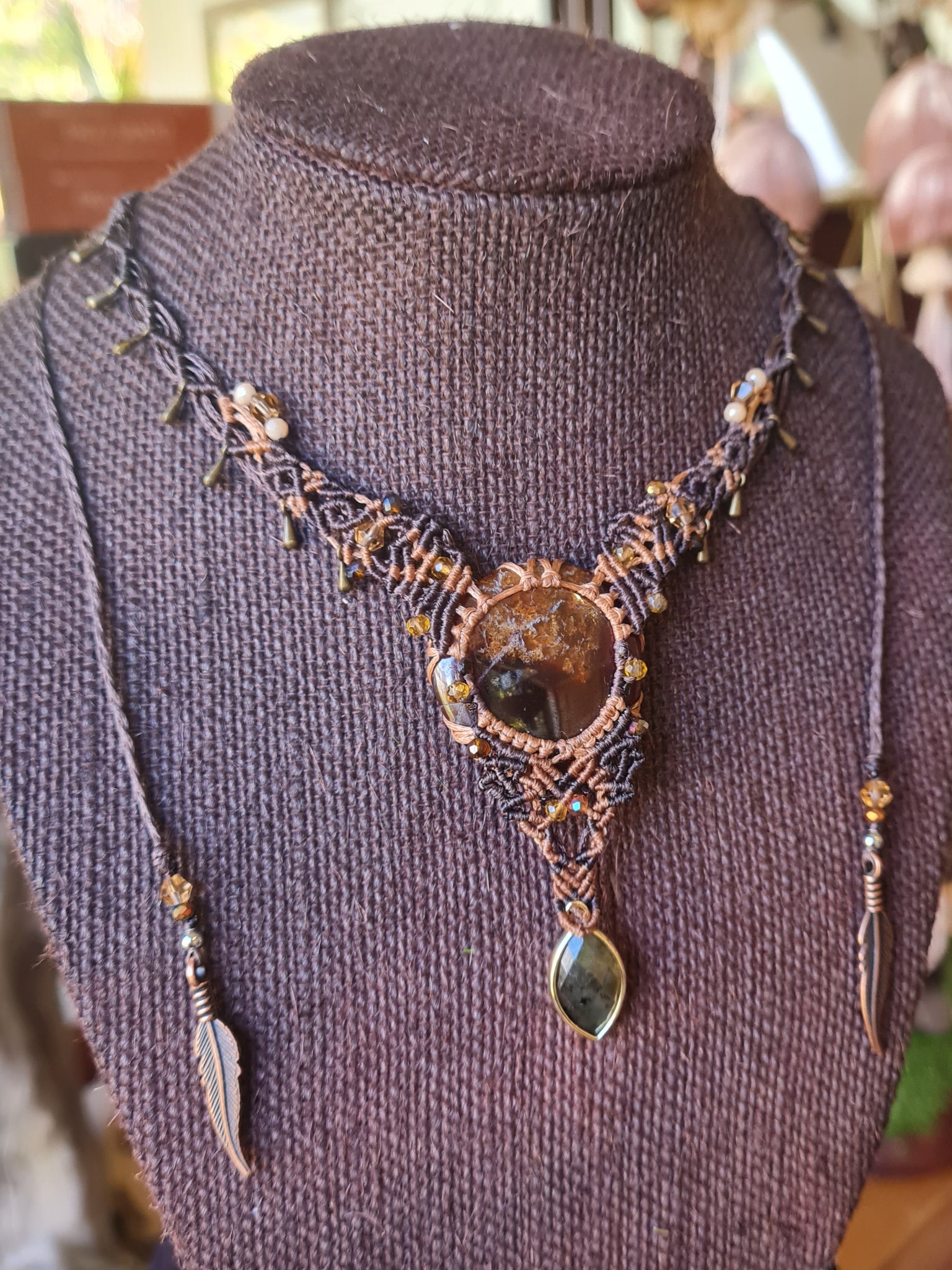 Red Garnet & Labradorite Wrapped in Dark Mocca &Caramel