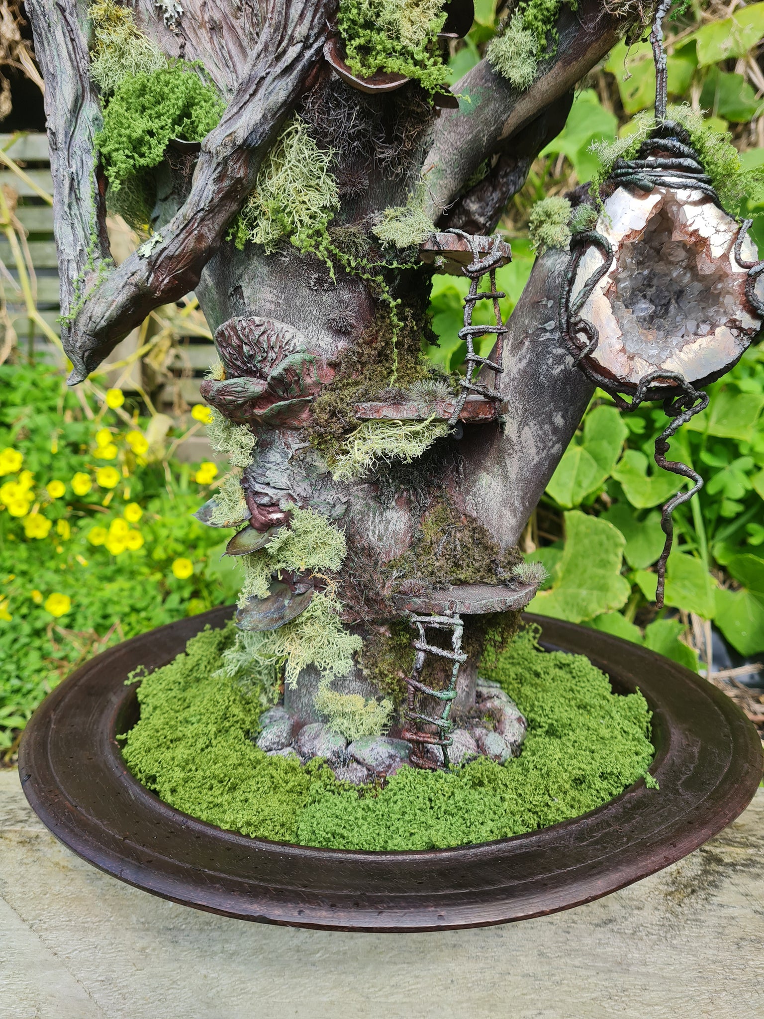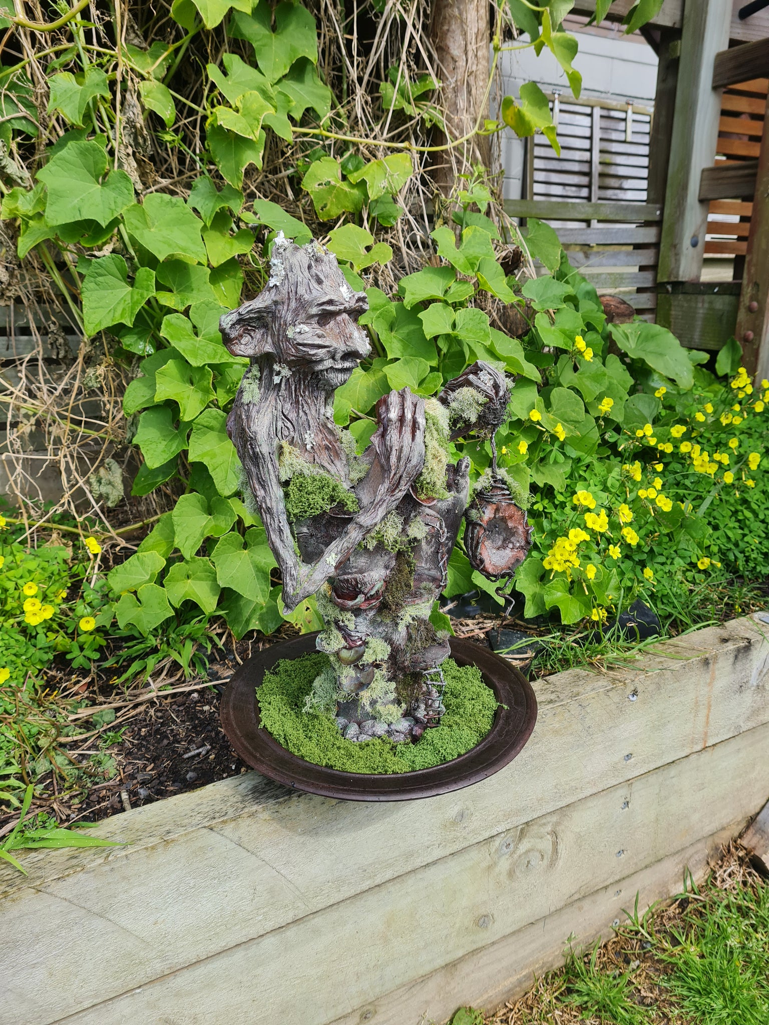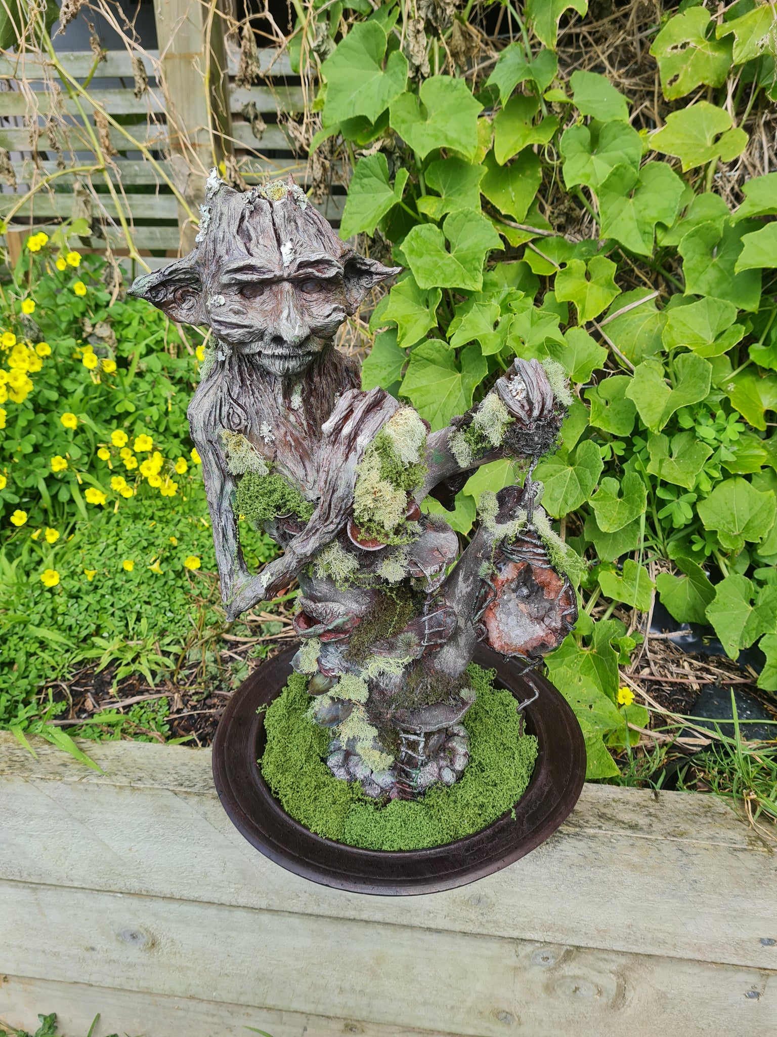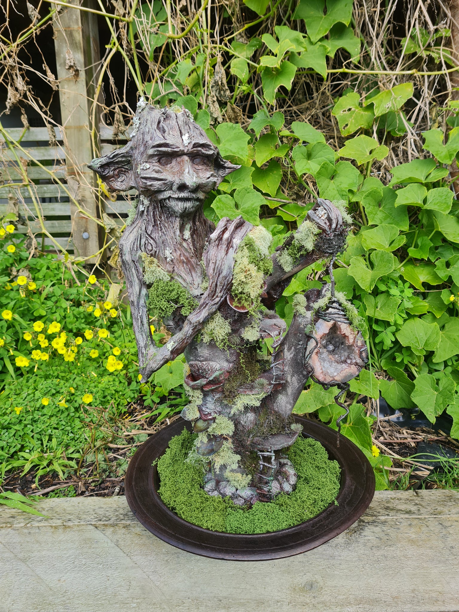 Made from air dry clay on a Wire Armature on wooden base .. 52cm high